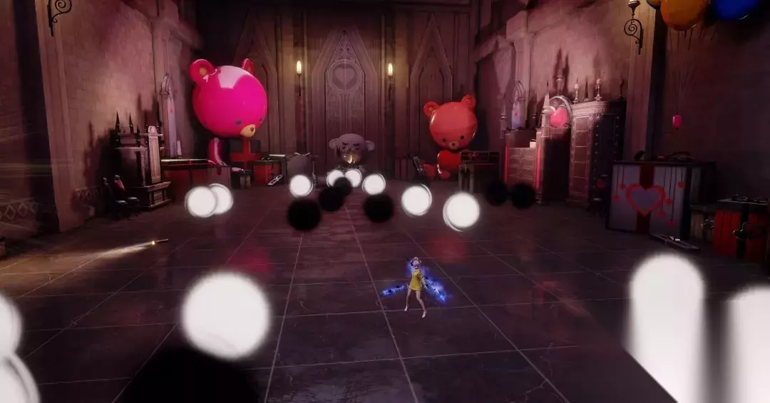 大家需要躲避黑色能量球同时靠近白色能量球,靠近任意球均会使其溶解并转化为善恶积分。 当善良积分达到100时, 布偶防御减少且眩晕10秒,而当邪恶积分到达100时, 布偶会发动全屏AOE技能,对同学们造成大量伤害!