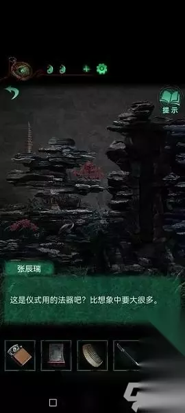 6、去女主房间窗户用红笔戳个洞,偷看,差点被人戳瞎眼睛,然后女主把符咒拿出来给张。 7、拿着符咒去门口的假山,按符咒的顺序按假山上面的部件。