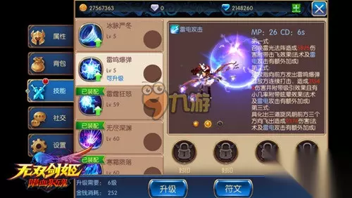 点击主界面右下角的变强菜单,就能进入技能界面,接着点击“符文”按钮进入符文面板,点击箭头可切换所对应的技能,点击符文背包中的符文选择“镶嵌”,可将符文镶嵌在技能中。