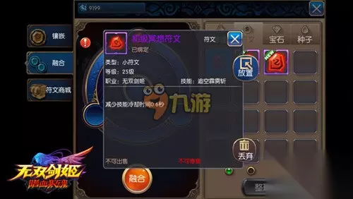 大部分符文都是绑定的,当符文背包中有很多多余或其他职业符文时,可以利用“符文融合”功能将多余的符文融合成新的符文,依旧在符文界面中,点击左侧标签“融合”进入融合界面,按照提示点击进行融合。