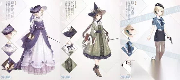 除了精彩的剧情,新一章的少女级关卡同样带来了三套新套装,分别是信鸽王国·【画中的鸢尾】、十二月剧团·【松林魔咒】和苹果联邦·【联邦女警】。