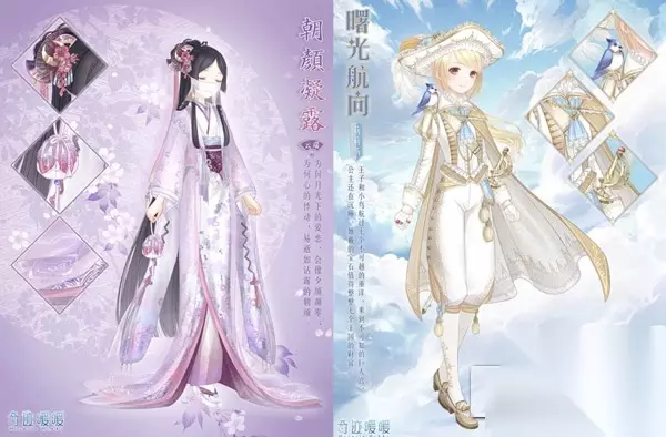 还有两套公主级的套装,分别是云端帝国·【朝颜凝露】和莉莉斯王国·【曙光航向】,这两套都需要经过多次进化才可以获得。