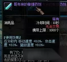 提升速度的药物过多,暂且列举这些,这样药物能让玩家在地下城中提升攻击速度,释放速度,移动速度,对于肩白这类职业来说,速度就相当于伤害,当然这些药也被广泛应用于土豪的竞速。 5.攻击力加成类