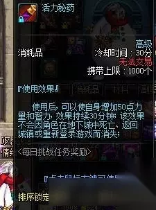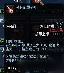 目前只能找到这些了,欢迎补充,以上这些药均是对力量及智力加成的药物(马奶酒除外),但也并不是打团时候都要吃。 每周推荐 12月15日更新内容 圣诞节不速之客 预约升级得好礼 宝石争夺战 圣诞嘉年华礼包 12月幸运冒险家 圣诞节活动一览 累积在线得好礼 热门专区 搬砖地图 宠物专区 套装专区 二觉专区 职业加点 11月活动 12月活动 热门下载 客户端下载 春节宠物补丁 辅助大全 补丁大全 众所周知,黄金羊毛,虚祖能量药都是商城获得的物品,故视自己情况考虑吃与不吃,而顶级力量药与活力秘药获取简单,因此和斗神之吼并称修炼场3药,可见这3个药队伤害提升的重要性。 3.减CD类