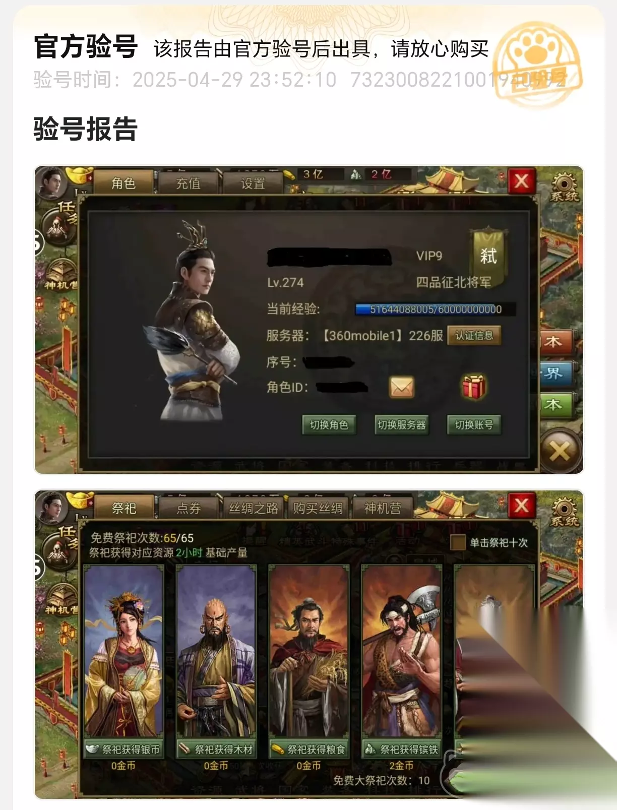 官方验号是交易猫保障交易安全的核心环节。验号过程至关重要,若出现疏漏,买家可能拿到与描述不符的账号,卖家则有信息泄露的隐患。交易猫由专业客服亲自登录账号,详细核查并截图关键数据,制作成验号报告,让买家全面掌握账号真实状态,既有效减少交易纠纷,也保护卖家隐私安全。