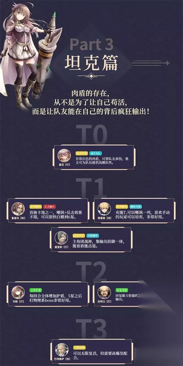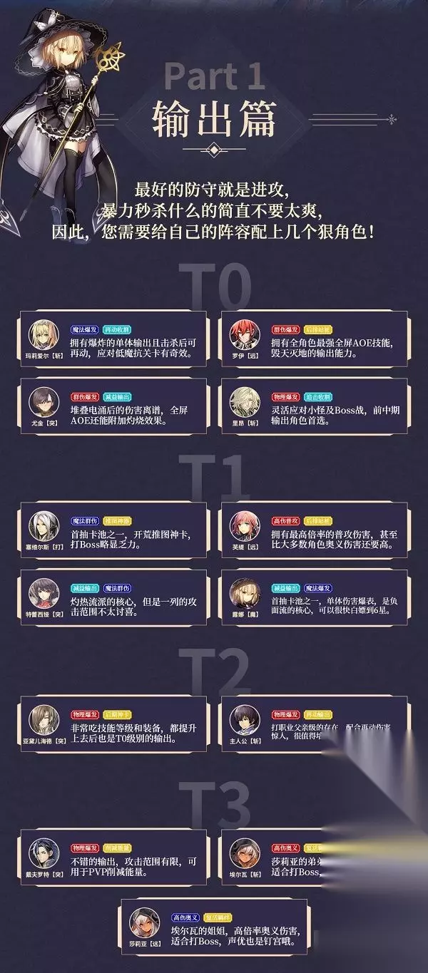 1.苍之骑士团2是一款卡牌养成类游戏,玩家需要自己对角色进行搭配和养成,因此养对角色很重要,根据不同位置,角色推荐也有所不同。 2.首先是输出位置,代表着队伍制造伤害的能力