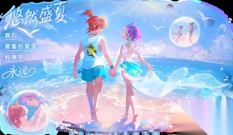全新萌夏表情 - 敬礼 2、参与“弹珠一夏”,抽绝版外观 弹珠一夏:发射弹珠抽取奖励,每抽都有机会获得外观大奖海风假日礼盒,使用后可自选绝版时装·悠然夏日/悠长假期或海岛泳圈坐骑盲盒。 全新装饰单品-时装挂件套组:任意悠然夏日(男)/悠长假期(女)时装均附赠绅士墨镜(男)/四叶草珠宝(女)时装挂件套组,参与盛夏百宝阁获取墨镜/珠宝挂件盲盒,还可解锁更多不同款式的挂件套组,时尚搭配,随心定义。