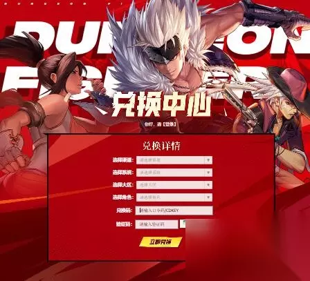2、之后点击选择渠道、系统、大区、角色、兑换码、验证码点击【立即兑换】。