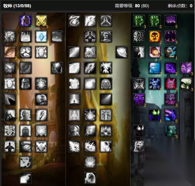 魔兽世界80级暗牧天赋加点一览 魔兽世界80级暗牧天赋,主要点出精神鞭笞、强化心灵震爆、暗影形态、吸血鬼之触和消散,其他增加伤害或者提高存活率的天赋根据PVE或PVP适当调整。 1、PVE天赋,放弃了部分控制类和防护类天赋,主要提升伤害值。