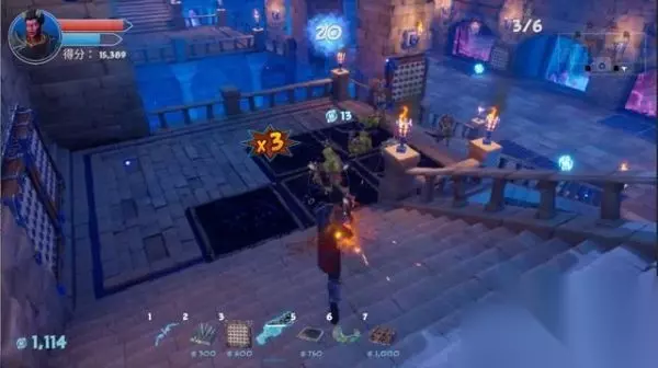 本关基本上就是在楼梯上跟怪物打,楼下范围比较大,只需在几个必经之地放陷阱即可。