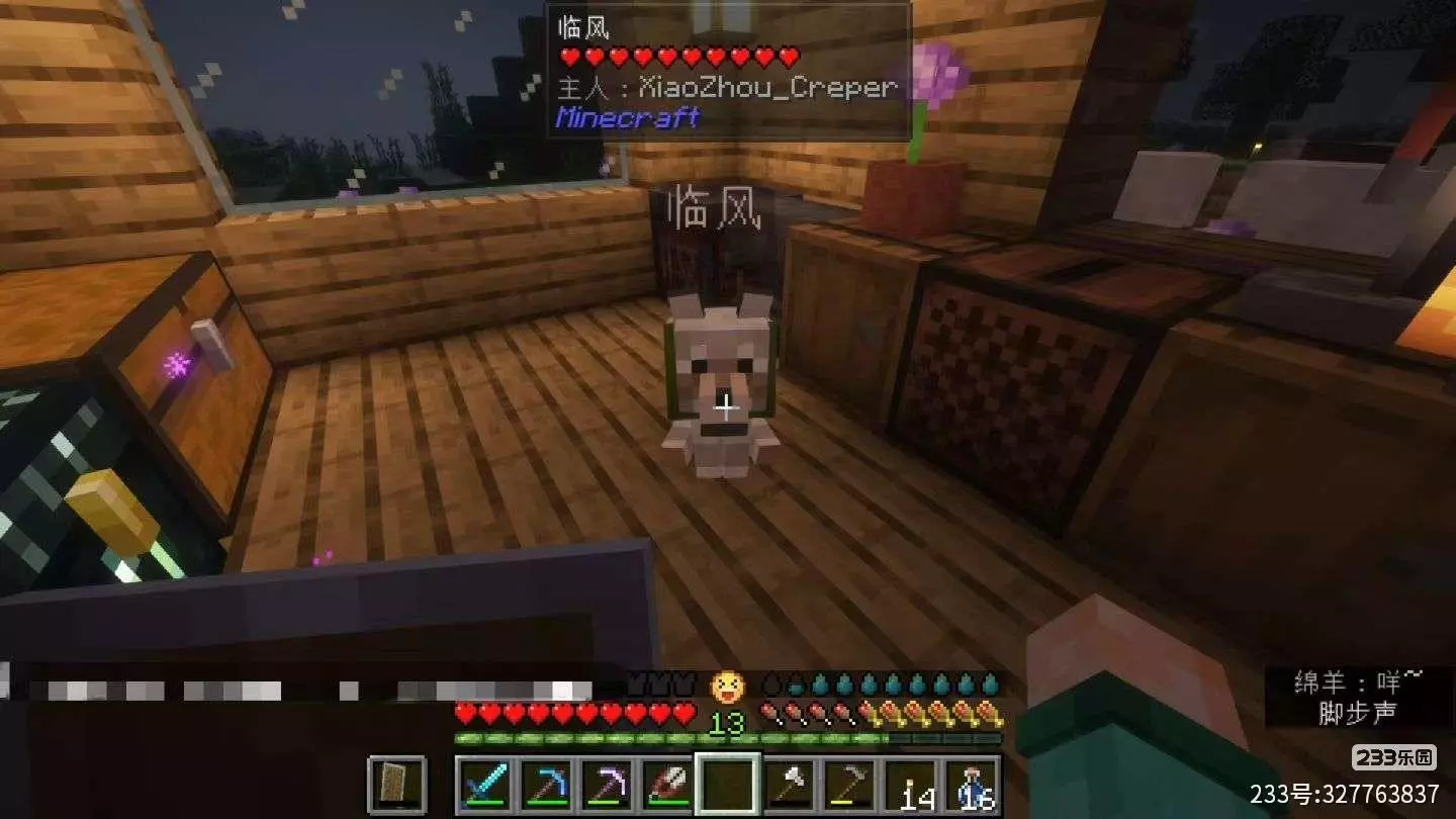 但总感觉少了点什么,屋里的生机只些花花草草…嗯,缺了点生气。我又森林中驯服一条狼,把它带了回家。给它戴上了一个绿色项圈,但……叫什么名字好呢?林风(我完整昵称的简称)……不行不行,那不是说自己是狗吗,叫……竹雨?好奇怪的名字,不行不行。