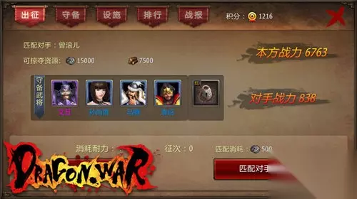 图1:《战龙卸甲》争霸模式 《战龙卸甲》争霸模式分为三个部分:匹配对战、武将防御以及阵营培养。对战顾名思义就是武斗,两军对决既是实力的比拼也是智慧的较量。系统会根据个人等级,自动匹配对手,手动确认后进入战斗界面。