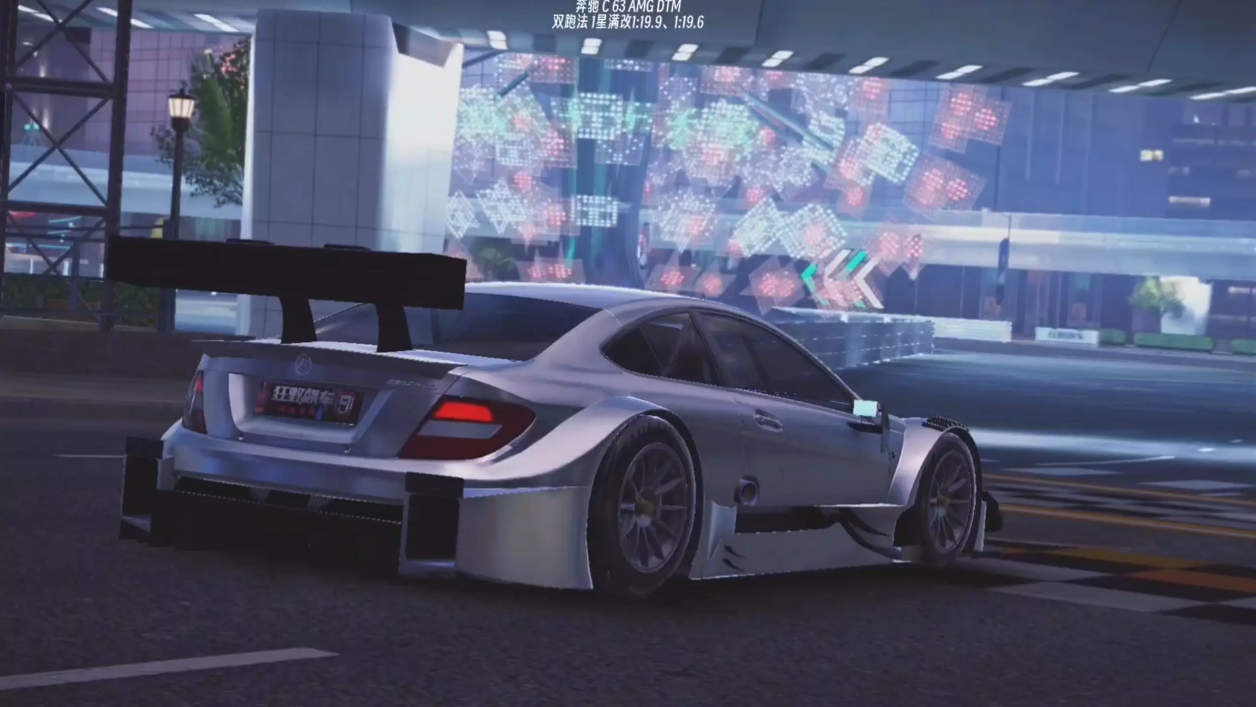 这是赛车游戏《狂野飙车》里奔驰C63大奖赛资格赛的个人跑法展示,画面呈现了驾驶奔驰C63在城市赛道行驶,包含漂移、360度旋转等操作的跑赛过程。