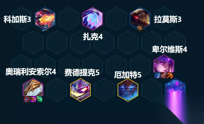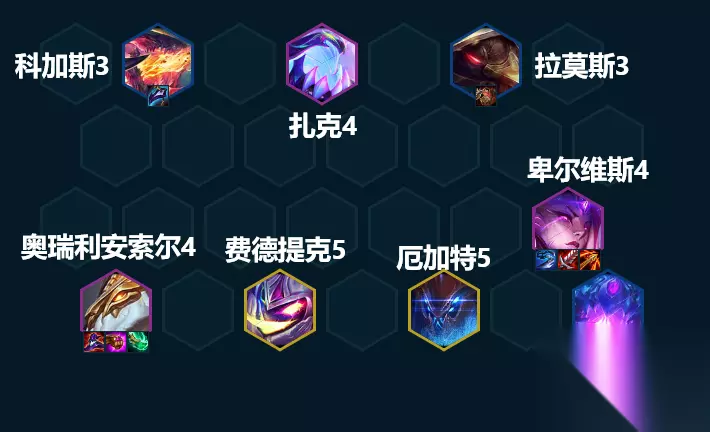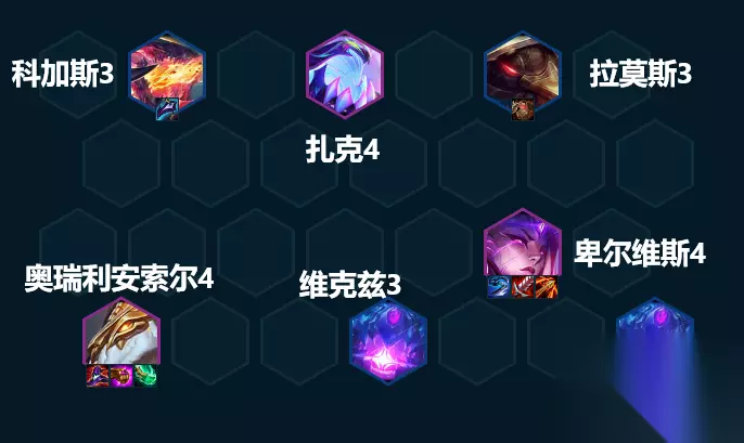同样的,这套阵容没有一个固定的主T,因为龙龟的技能有护甲加成,而大虫子的技能有魔抗加成,所以会导致他们在出装上面的“偏科”,一个护甲拉满的龙龟就是物理输出阵容的噩梦。在实战中。我们可以根据对手玩的偏物理阵容多还是偏魔法阵容多来决定给拉莫斯或者科加斯找装备。 3.运营攻略 开局 我们的这套阵容不吃装备,所以其实前面抢到什么装备都无所谓,可以先按照玩别的阵容的思路去抢装备。