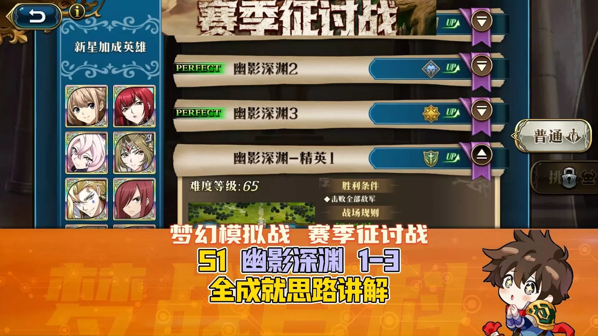 这是《梦幻模拟战手游》S2赛季征讨战幽影禁区1的攻略,带来该关卡的全成就达成阵容推荐与思路讲解,涉及元素之主、元素充能等战斗要点,助力玩家通关拿满成就。