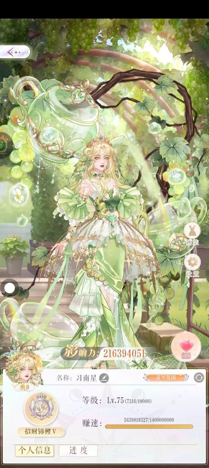 从开始几万影响力到现在的两亿,服装从零散到百套,现在的一切都是当初小小的我不敢想的,我很爱这个游戏,同时也很爱这个我亲自养大的女儿,我将她打造成与我现实完全相反的角色,现实的我自卑内向,就让游戏里的你替我开朗明媚吧。