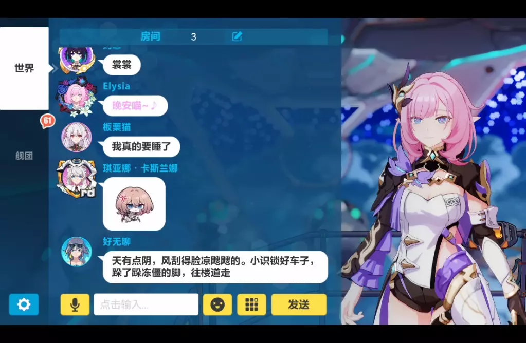 玩家展示游戏《锚点降临》中花费168元获取的艾丽西亚(爱莉希雅)相关内容,呈现了该角色的互动剧情与游戏主界面,角色有着丰富的互动台词。