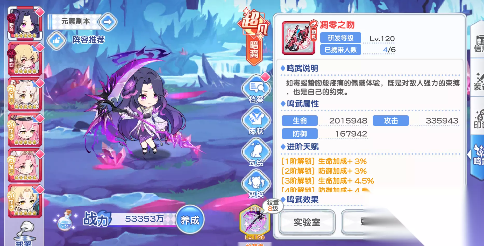 由于是顶配打法 ,所以对于队伍来说需要满配 火之领域 水之领域 风之领域 雷之领域 对于正常玩家来说,每一个都要换来换去角色 但是对于顶配玩家来说,似乎还有另一种方法 1)队伍配置(仅供参考)