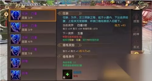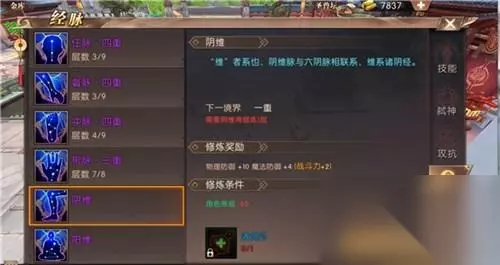 【修炼经脉分类】 任脉:其实我们的任脉主要是增加智力,耐力,每一重都会增加一定的物理防御,(物理防御也就是减少物理职业对自己造成的伤害) 督脉:督脉主要是增加智力,精神,每一重都会提升一定的魔法防御。(魔法防御也就是减少魔攻职业对自己造成的伤害) 冲脉:冲脉主要是增加气运,耐力,每一重都会提升一定的最大魔法攻击(魔法攻击主要适用我们魔法职业,物理职业的可以先不用提升这个) 带脉:带脉主要是增加气运,精神,每一重都会提升一定得最小魔攻,带脉和冲脉其实是息息相关的。 阴维:阴维主要是增加物理防御,魔法防御的(物理防御比魔法防御加的多)。 阳维:阳维主要是增加魔法防御,物理防御的(魔法防御比物理防御加的多)。