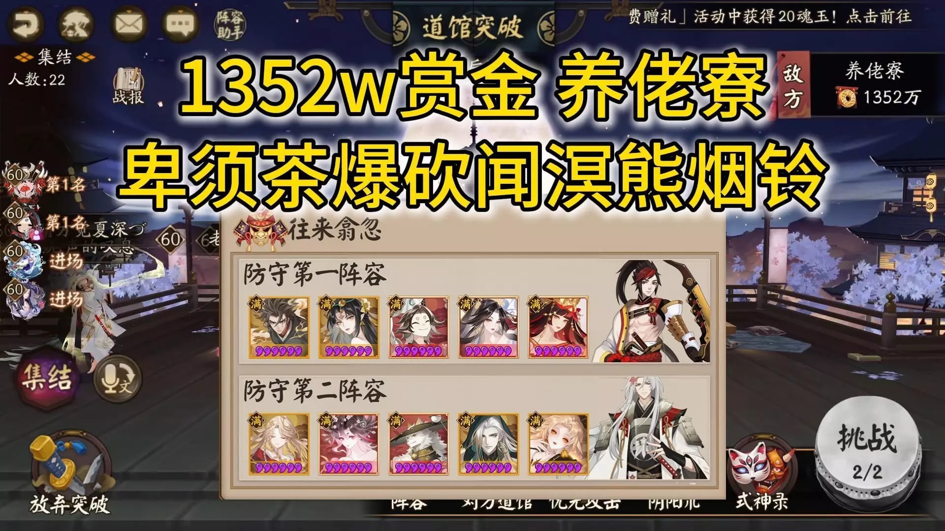 这是阴阳师市加美版本道馆进攻攻略,本次进攻15分钟击败35人,成功双杀馆主。攻略总结:不带星熊的市加美防守难以抵御神珏体系进攻,带星熊的市加美难扛中速珏歌与蛇珏叉卑进攻,一速卑防守推荐带阎魔压制,其他阵容按局势切换对应阵容即可。