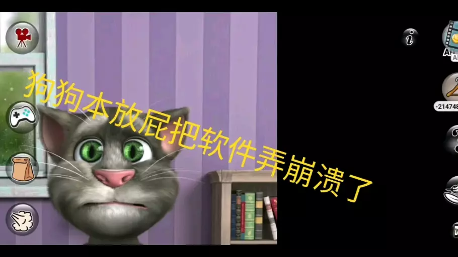 这是会说话的汤姆猫相关游戏内容,展示了狗狗本的互动玩法,狗狗本会学汤姆猫说话,还能做出读报纸、抬手等趣味动作,界面有各类互动道具可操作。