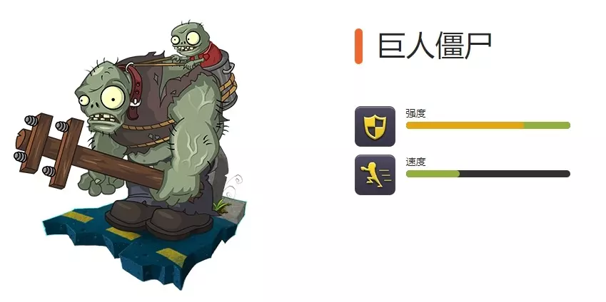 背景 伤害: 用电线杆砸碎植物 特点: 受到伤害后扔出小鬼僵尸 巨人僵尸毫无疑问是力量的化身。他是一架饥饿的推土机,在他面前你无路可逃。他就是挣脱束缚的恐惧。好吧,他的恐惧有一点被束缚了。 伤害特点 巨人僵尸的确是个麻烦。 好啦,以上就是关于植物大战僵尸2全巨人僵尸一览的详情介绍了。一定不要错过哈~