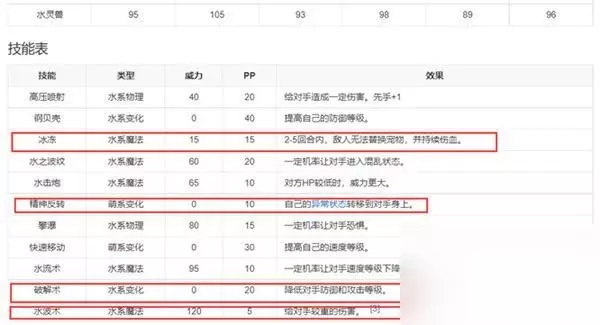 技能搭配技能搭配:趁势击→雨飘摇→水灵动→逍遥游→飞燕凌波。 1、趁势击:敌人身上负面强化的级别和类型越高,该技能的力量也就越大,阴雨天气时,首先减少敌人的防御,然后造成损失,先手加2。 2、雨飘摇:持续3回合给予敌人负面强化,强化类型和回合数量相关,首回合消除敌人正面强化,召唤阴雨天气,持续6回合,先手加1。 3、水灵动:净化自身,对异常和负面短暂免疫,恢复自身精力值,阴雨天气下将获得金额相当于恢复数量的护盾,在2-5回合内给予敌人固定伤害,恢复自身一定精力值,先手加4; 4、逍遥游:随心所欲无拘无束心法净化自己,增加生命和闪避,先手加7分; 5、飞燕凌波:回复己方所有成员生命值,强化等级按PP值给予,先手加4。 水灵兽技能表