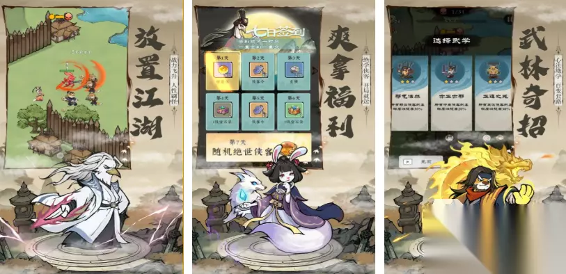 格斗江湖是福利拉满的一款武侠小说改编的竖屏佳作,拥有水墨风怀旧背景展现的江湖世界更具魅力,古典武侠的世界观超级庞大也可以放置角色战斗,江湖世界的快意恩仇都会在游戏中全面上演,化身一代大侠在水墨世界中行侠仗义爽到飞起,策略至上的放置侠客战斗理念也会吸引更多玩家。 高速下载 普通下载 优先233乐园APP下载 9、《江湖论剑》