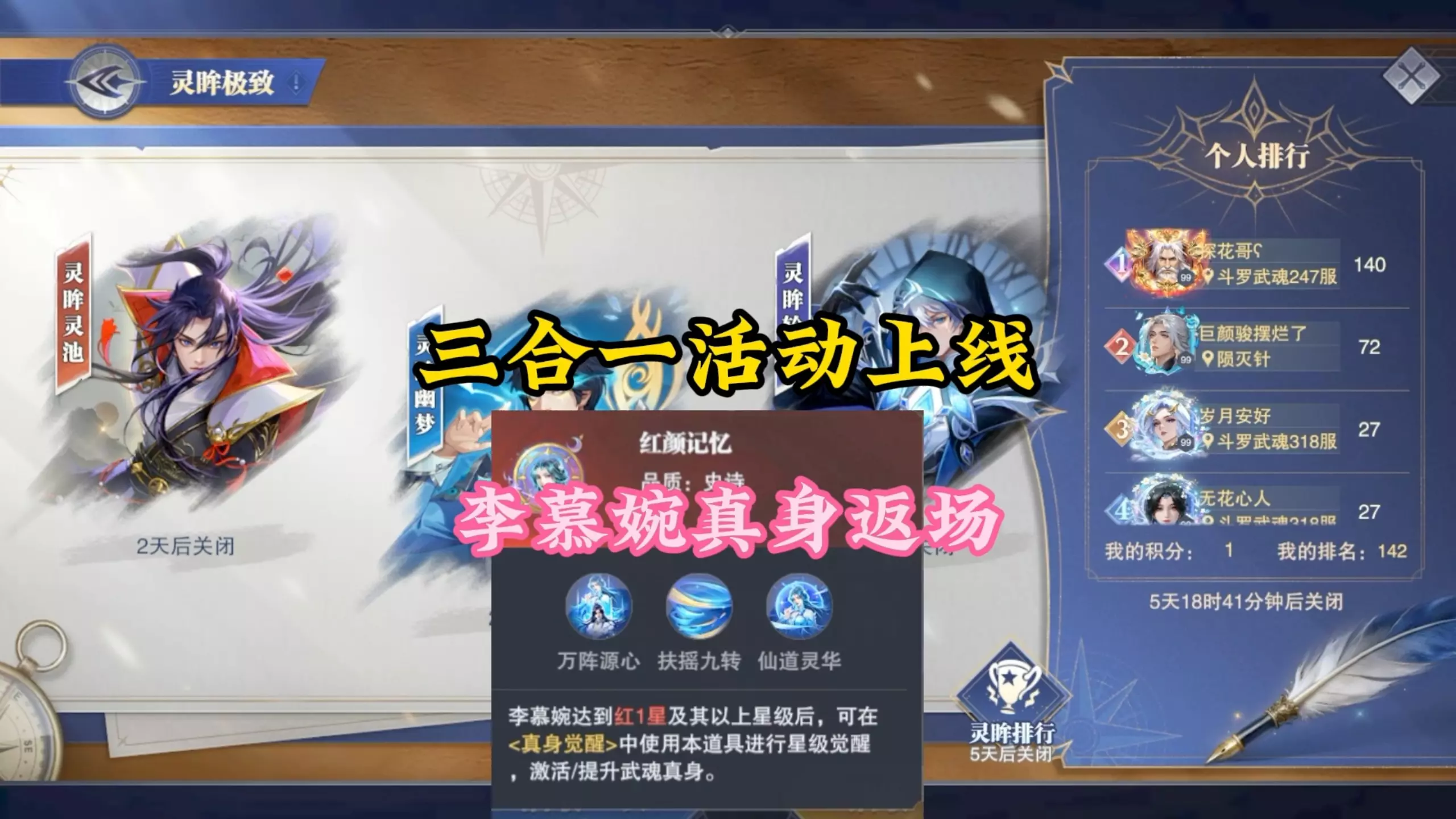 《斗罗大陆魂师对决》周一上线多项活动,三合一活动再次开启,本次更新加入SP+冰碧帝皇蝎神兽,还有食神圣谕、千道流·源心等新内容,带来不少增伤相关的技能效果。