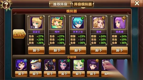 前段时间,会里老听到妹子说“这英雄太丑了,我不要”“才一生缘啊,怎么也要有一世缘吧”,好吧,作为一个勤劳的副会,颜值阵容分分钟出炉了,休闲的萌萌哒妹子们再也不用担心推图是半兽人与兽人的战争啦,阵容如下: 主角 亚瑟王 甩葱妹 爱神 梅林 雅典娜 符文:冰冻 风怒 铁壁(迅捷) 祝福 阵容分析: 1.有没有觉得主角和他们五个比起来,就是一矮穷挫啊!! 2.双治疗阵容,故此放弃了甩葱妹攻击缘。 3.带低级符文主要是考虑休闲妹子们符文塔不会太高,符文尘不多,保证符文跟上等级以及低级符文的短cd,低消耗,能更多次的使用! 4.亚瑟王的格挡以及甩葱妹的躲避保证了他俩前排的生存能力。 5.真的是一世缘耶!! 该阵容颜值爆表,推图能勉强一用。下附图,顺便露个脸 iOS 正版1区 拖把楚脸上