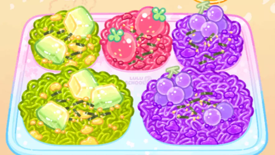 这是一款美食料理类小游戏,游戏里有丰富多样的餐食,包括各类菜肴、饭团、饮品等,博主表示看着这些丰富的饭食,忍不住要把所有餐食都体验一遍。