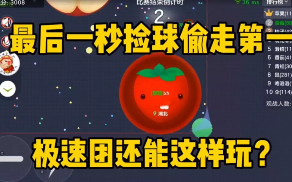 这是一则《球球大作战》的游戏内容,展示了玩家在闪合大乱斗模式中使用单人侧涨玩法的游戏过程,该玩家凭借此玩法取得不错的游戏成绩,呈现了该玩法的实战效果。