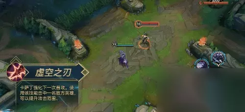 W/2技能-虚空之刃 强化下一次普攻,造成伤害并回复法力值,若击败目标将返还一半技能冷却。