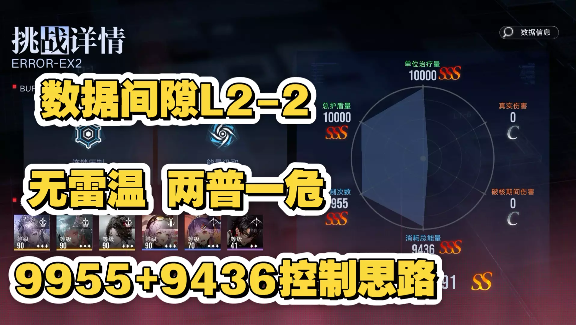 这是《无期迷途》数据间隙临界生还关卡的双SSS轮椅打法攻略,使用助战莱塔可应对大运机制,莱塔大招能保障角色安全,还可将莱塔大招和艾瑞尔专烙给到特定角色,若想拿更高分数可刻意触发01buff回血。