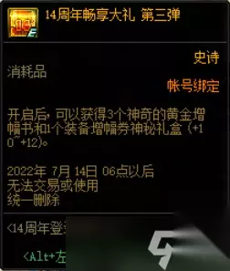 dnf周年庆时间几月几号?DNF是在2008年公测的,今年2022年是第14周年庆了,很多小伙伴不知道2022年的周年庆奖励都有哪些奖励,时间又是什么时候,今天就带来了详细的介绍,一起看下吧。 dnf周年庆时间几月几号 6月18日6:00~6月20日5:59期间可以在活动页面申请领奖资格,6月23日6:00~6月30日5:59期间可以领取奖励 DNF周年庆时间是6月19日,DNF这款游戏在2008年的6月19日正式公测 下面为2022年的周年庆奖励 第一弹: