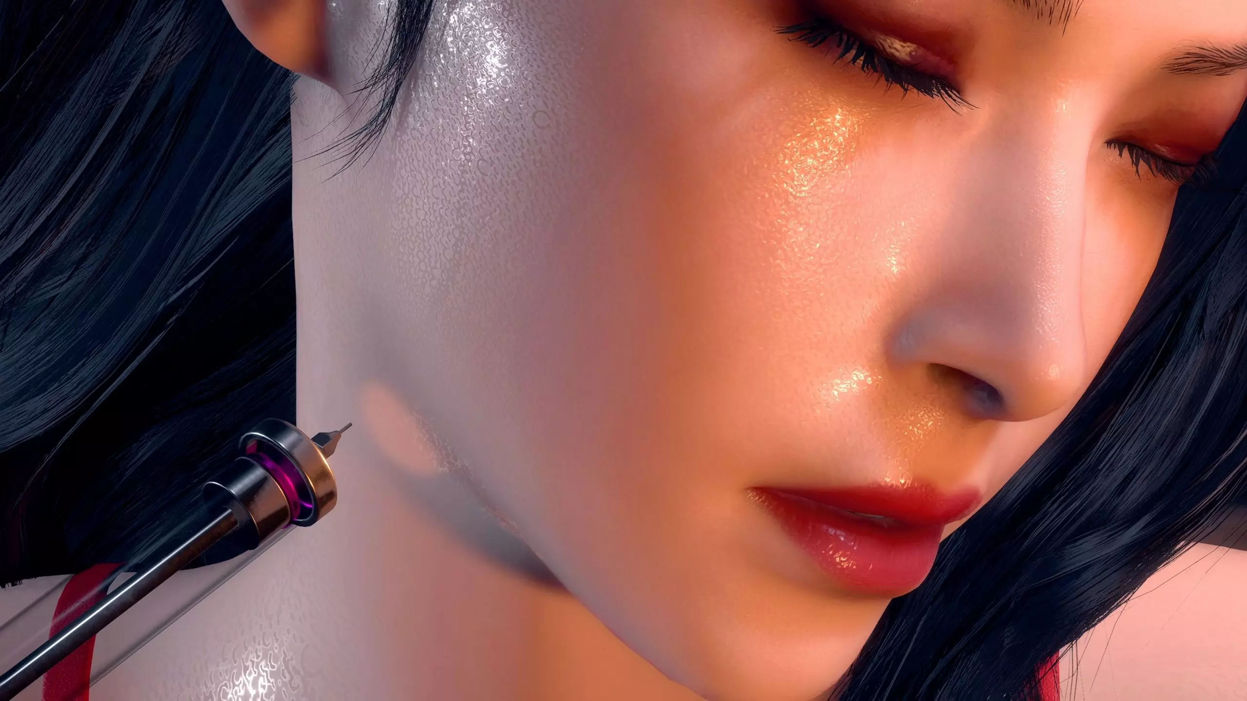 这是《生化危机4重置版》的游戏内容展示,呈现了身着黑色湿身造型服装的游戏角色,还能看到游戏内的场景与互动元素,展现了这款游戏的特色角色外观与游戏画面。