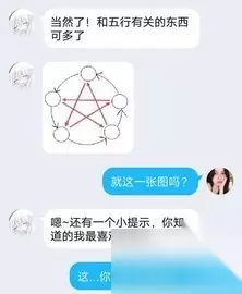 谜题解析 从给出的条件可以看出,这是一个五行图,但和常见的五行图又有区别(箭头指向不同)。查找有关资料并结合小提示(最喜欢秋天)得知,秋天对应五行里面的金。所以最顶上的一个是金。再用相生相克的关系就可以得到一个五行图。