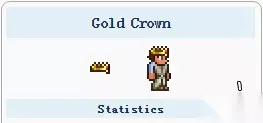 3、金皇冠 ①获取方式:金皇冠是一件头部装饰物品,同时也是制作史莱姆王冠的材料之一。使用金锭和红宝石在铁砧/铅砧处合成。 ②时装属性:id:264;品质:白色;售价:20银