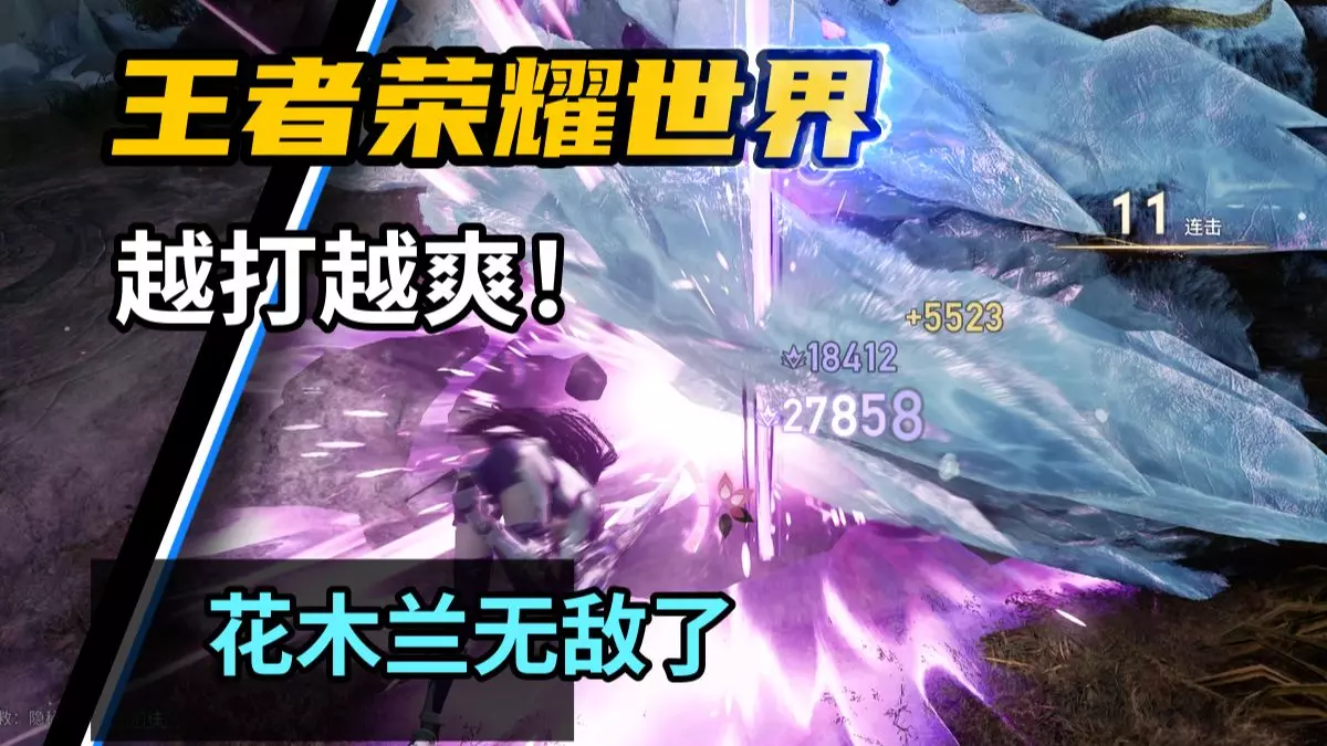 这是《王者荣耀世界》的游戏内容,展示了花木兰在游戏中攻击boss玄冰坠天盾的过程,花木兰一个Q技能打出高额伤害,仅差40W血就能将该boss击败。