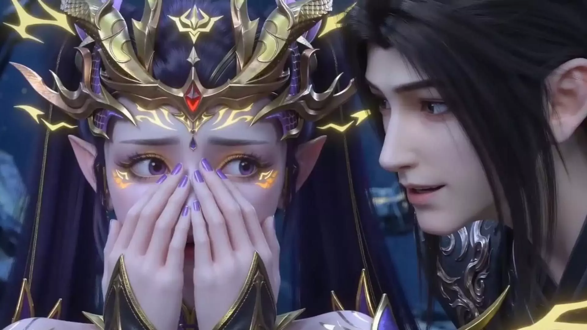 这是《斗破苍穹年番》的相关内容,展示了萧炎与成年紫妍的暧昧互动场景,萧炎受伤,紫妍因屠龙剑消耗了生命力,画面氛围引人热议。