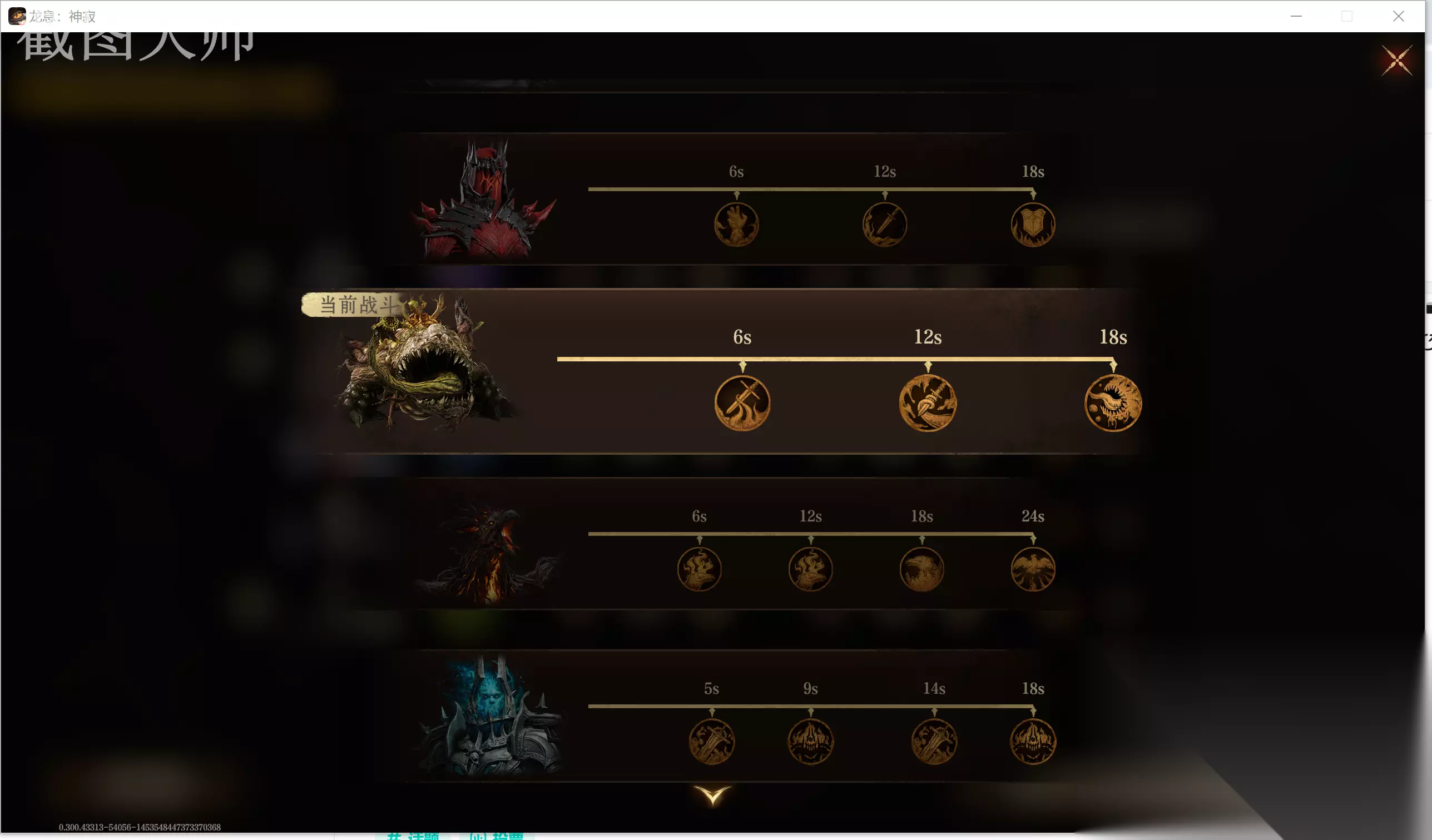 全员不死头,因为这个boss的二技能会丢出两个溜溜球特别疼,不小心就会把你的人物砸死,所以最好都带一个不死头。守护者之杖也最好带一个。 下面是技能轴: