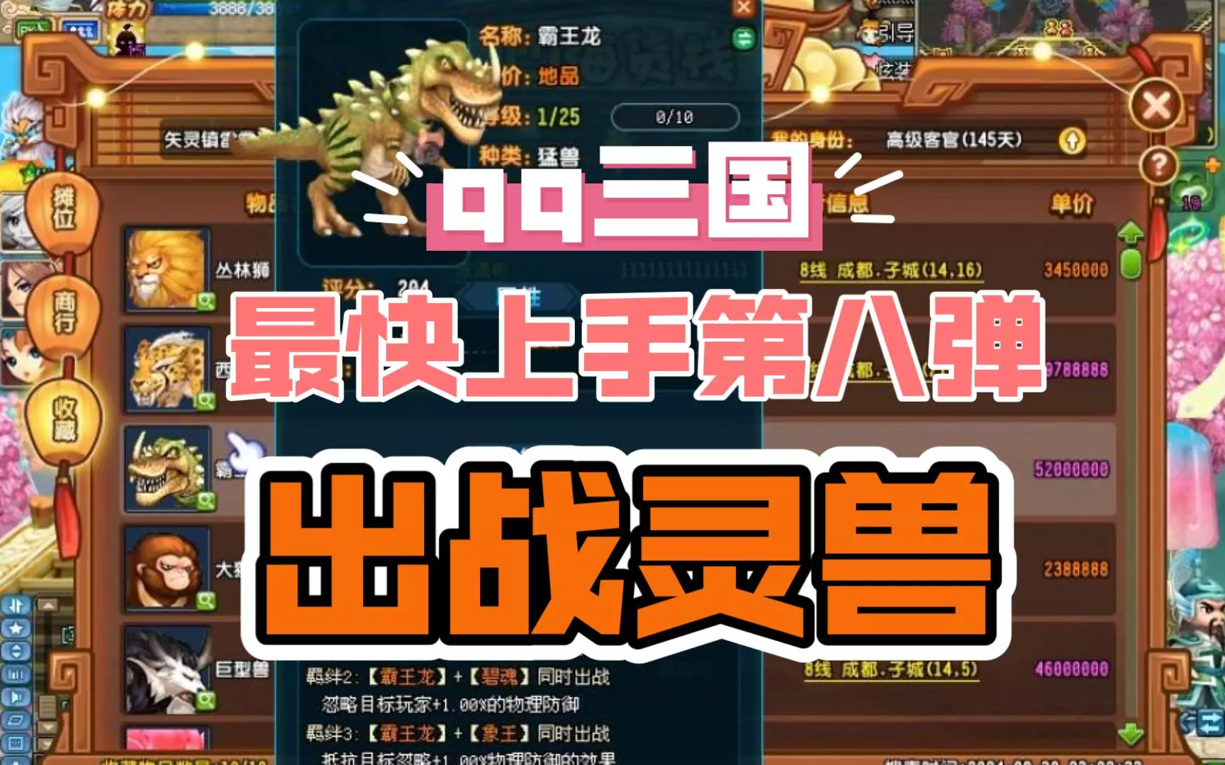 这是QQ三国入坑指南的第七弹,介绍了游戏里的灵兽系统,展示了灵兽图鉴的各类灵兽,讲解图鉴收集属性加成、八阵图战阵玩法,还演示了在四海货栈收购灵兽的方法,助力新手快速上手QQ三国灵兽系统。