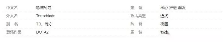 在游戏《Dota2》中,TB指的是恐怖利刃,因为恐怖利刃的英文名为Terror Blade,因此简称为TB。恐怖利刃是夜魇阵营的一名敏捷英雄,前期配合队友的话能取得击杀的机会,后期则需要依靠装备的优势,运用好强大的幻象和本体进行输出。