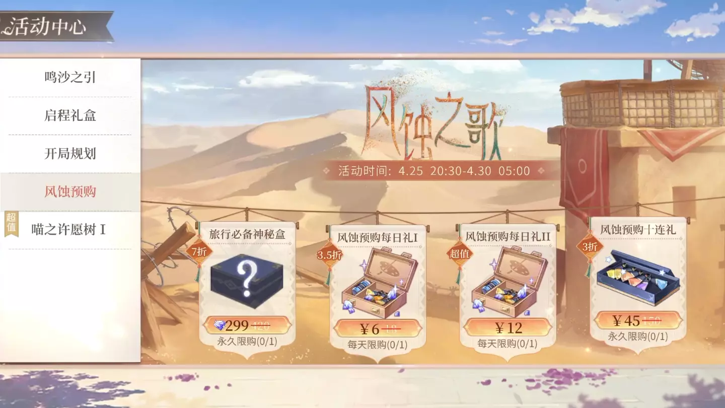 【大型主题活动「风蚀之歌」4月30日开启】 山石中藏着神明,黄沙中埋着故事。 神像座前,香火缭绕,年年岁岁。 有谁的歌声惊动了神明,换得那来自云间的垂眸? ※ …