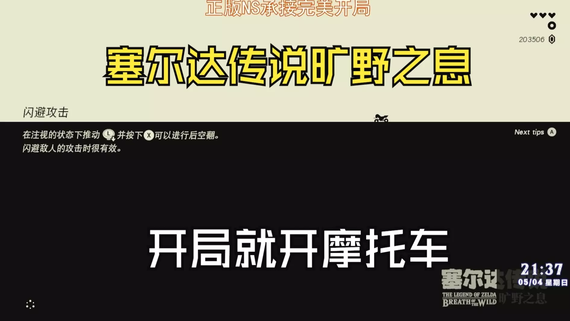 这是《塞尔达传说:旷野之息》Day04的游戏游玩记录,展示了荒野开宝箱、挑战水神兽、偶遇怪物、拍照收集生物、扩充武器栏、制冰攀爬等塞尔达传说旷野之息的游玩场景。