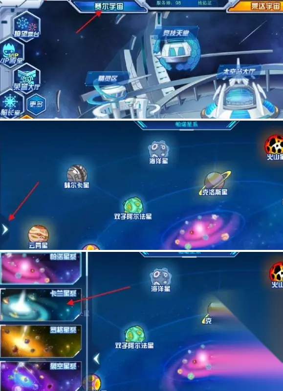 4、进入后点击赛尔宇宙。 5、点击左侧箭头。 6、选择卡兰星系。