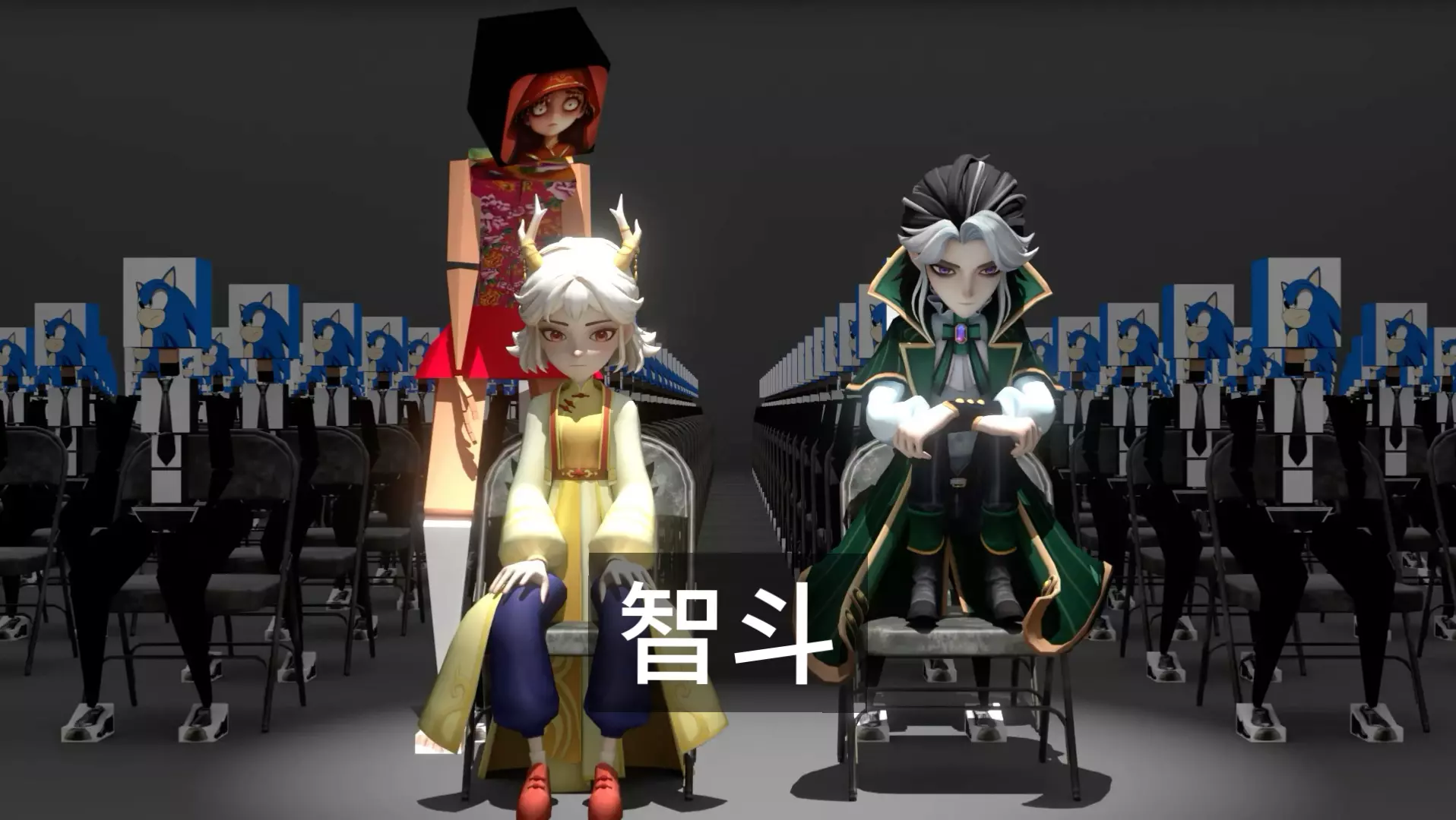 这是《动画短片 你为什么不救我(伥鬼篇)下》,画面呈现了白发持刃角色、马头西装角色等形象,还有特殊的蛋形形象,角色间有着相关对话推进剧情,属于伥鬼主题的动画内容。