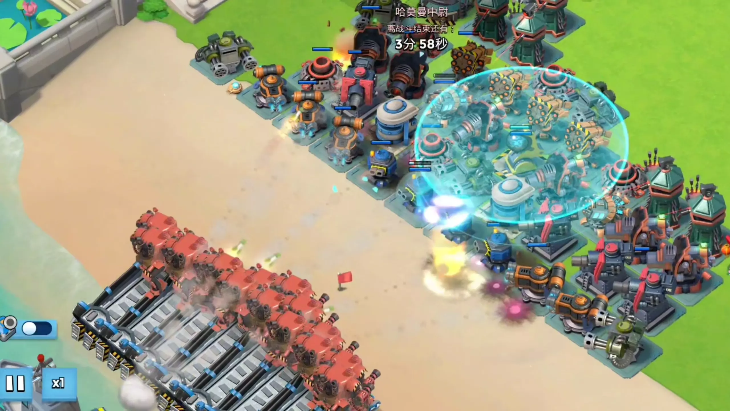 这是策略游戏《海岛奇兵》的游戏内容,展示哈莫曼的反击玩法,该玩法如今有10个阶段,视频中呈现了用744个步兵搭配其他兵种进攻哈莫曼舰队的战斗过程,展现战斗压迫感。