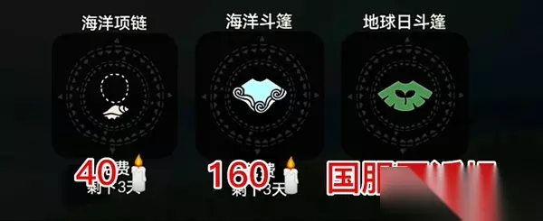2、新增物品: (1)海洋项链:需要40个蜡烛 (2)海洋斗篷:需要160个蜡烛 (3)地球日斗篷:国服不返场