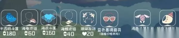 3、返场物品: 半透明斗篷:需要180蜡烛 海龟项链:需要60蜡烛 海浪斗篷:需要160蜡烛 海螺项链:需要40蜡烛 珊瑚发饰:需要20爱心 海龟斗篷礼包:需要98R 回音海螺礼包:需要30R